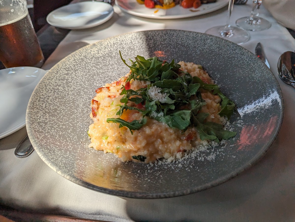 Inside, the ambiance strikes a perfect balance between modern design and intimate lighting. It’s easy to linger over a glass of wine or savor a great cocktail while chatting with friends. Those looking for a more private setting can even opt for the private dining room, which is ideal for small gatherings or special occasions.