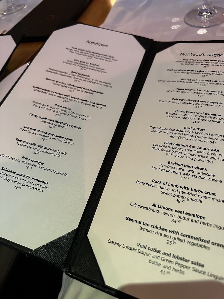 Gabrielle potatoes, sour cream, green onions, black forest bacon, pepper sauce and Brandy